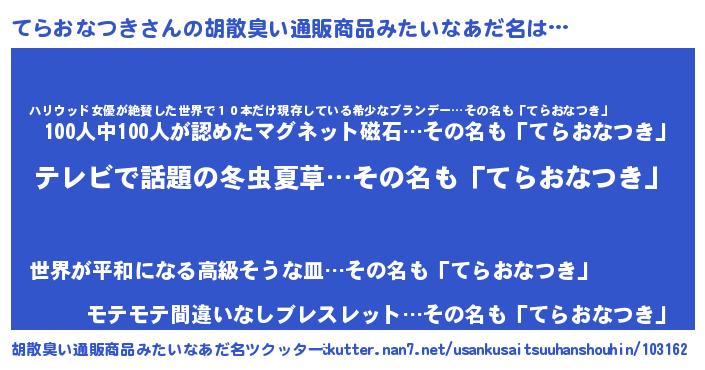 | 意味不明あだ名 | 『自称てらおなつき』 |