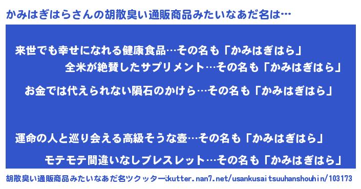 | ヘコむあだ名 | 『かみはぎはら(苦笑)』『かみにゅー』 |