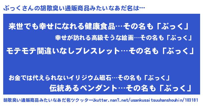| ヘコむあだ名 | 『ぶっにー』『ぶっく(笑)』『つくし』 |