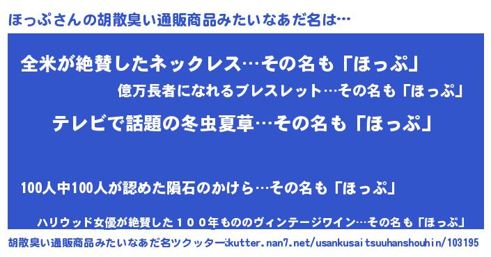 | ヘコむあだ名 | 『ほっっちょ』『ほっにゅー』『豆乳』 |