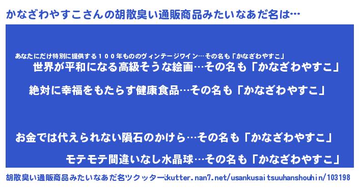 | 意味不明あだ名 | 『永久保存かなざわやすこ』 |