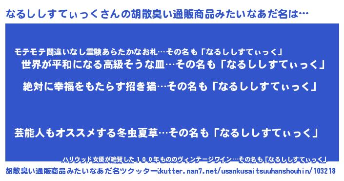 | ヘコむあだ名 | 『なるししすてぃっく(笑)』『なるっふぃ~』 |