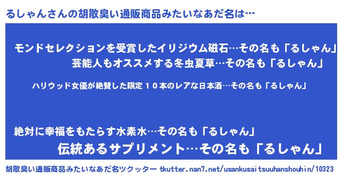 | 意味不明あだ名 | 『住所不定無職るしゃん(68歳)』 |