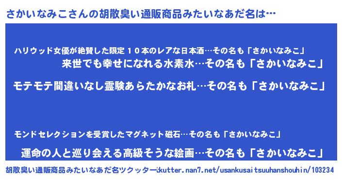 | 恥ずかしいあだ名 | 『プリティーさかいなみこ』『さかっちょ』 |