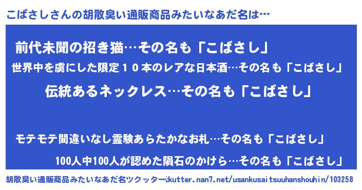 | 意味不明あだ名 | 『とにかく怪しいこばさし』 |