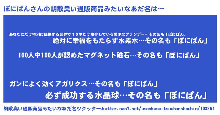 ぽにぱんさんの胡散臭い通販商品みたいなあだ名をツクッター!