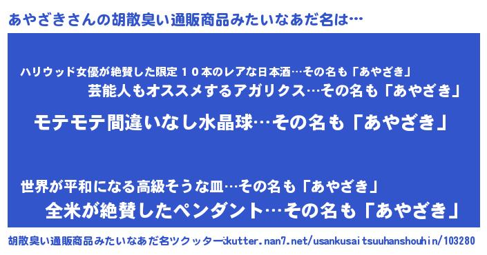 | ヘコむあだ名 | 『あやにゅー』『あやお』『なまこ酢』 |
