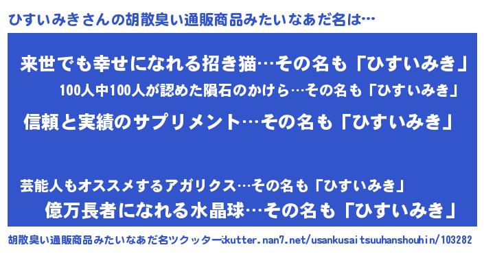 | 意味不明あだ名 | 『とにかく怪しいひすいみき』 |