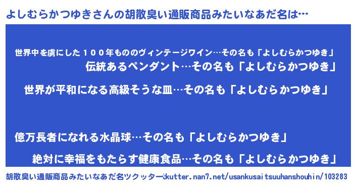 | 肩書あだ名 | 『よしむらかつゆき国家主席』 |