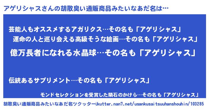 | 肩書あだ名 | 『アゲリシャス大尉』『アゲリシャス店長』 |