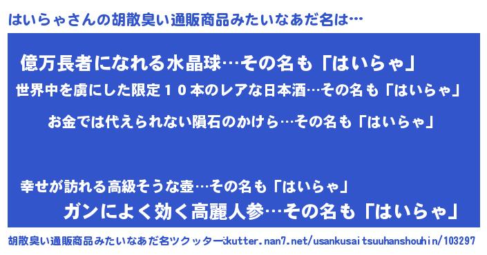 | ヒーロー風カッコイイあだ名 | 『愛の使者はいらゃ』『スーパーハイラャ』 |