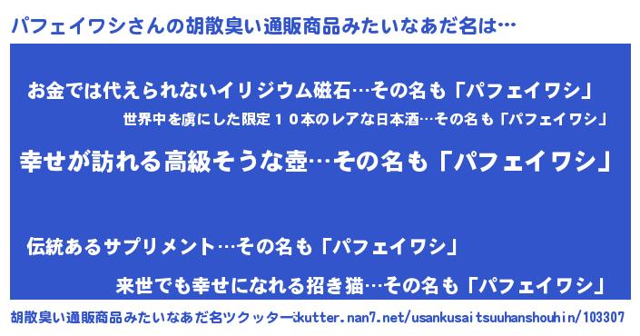 | 意味不明あだ名 | 『パフェイワシフォーエバー』 |