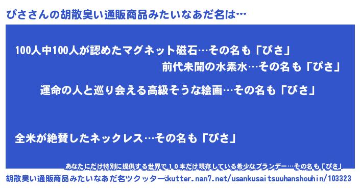 ぴささんの胡散臭い通販商品みたいなあだ名をツクッター!
