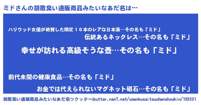 | 欧米人風あだ名 | 『ミドクリステル』『ダレノガレミド』 |