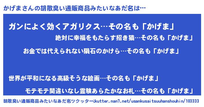 | 意味不明あだ名 | 『眠気覚ましガムかげま味』『自称かげま』 |