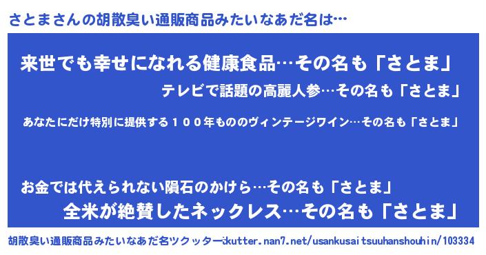 | 意味不明あだ名 | 『住所不定無職さとま(10歳)』『自称さとま』 |