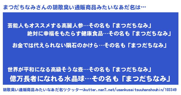 | ヘコむあだ名 | 『まつっふぃ~』『まつだちなみ(遠い目)』 |