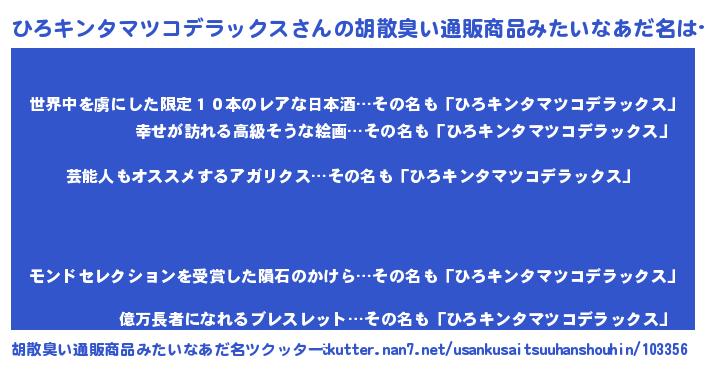 | 男性向けラノベタイトル風あだ名 | 『Re:ひろキンタマツコデラックスから始める異世界生活』 |
