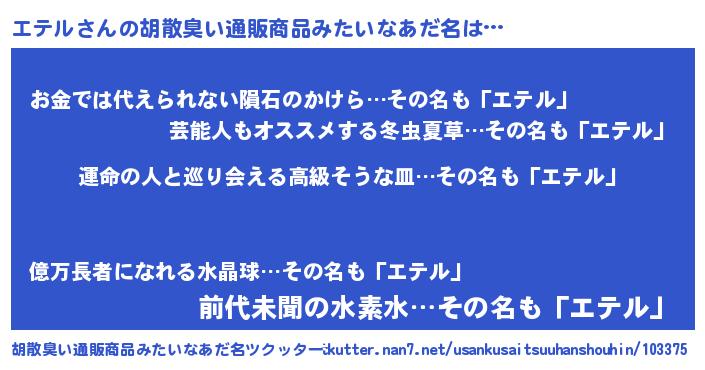 | 女子向けラノベタイトル風あだ名 | 『エテルの婚約者』『エテル恋絵巻』 |