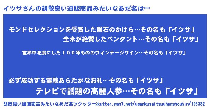 | 意味不明あだ名 | 『住所不定無職イツサ(3歳)』『自称イツサ』 |