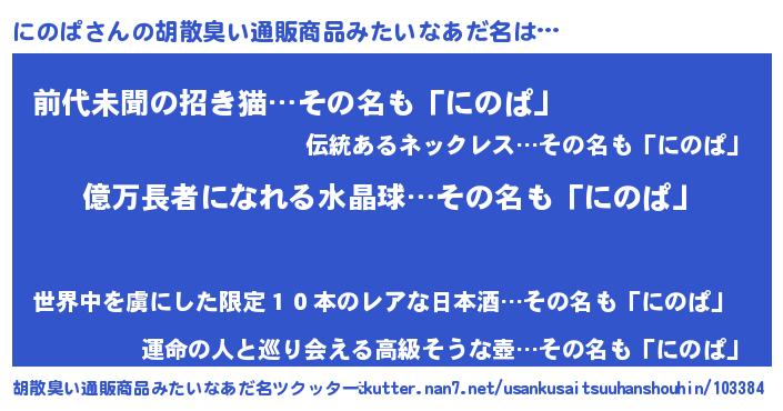 | 意味不明あだ名 | 『ペロリンにのぱ』『永久保存にのぱ』 |