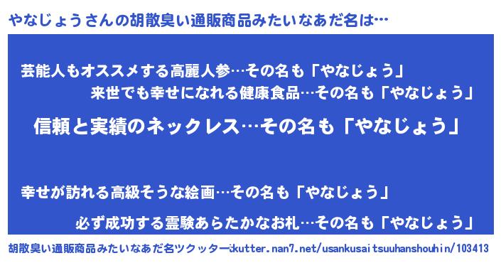 | 意味不明あだ名 | 『とにかく怪しいやなじょう』 |