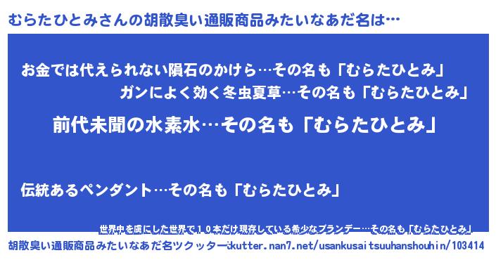 | 可愛いあだ名 | 『むらたひとみママ』『むらちゅっちゅ』 |