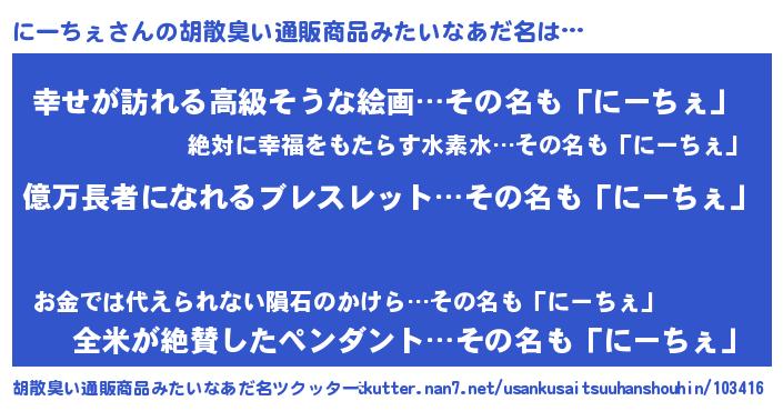 | ポケモン風あだ名 | 『ニーチュウ』『ニーチダネ』 |
