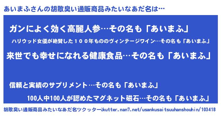 | ヘコむあだ名 | 『あいまふ(笑)』『あい太郎』 |