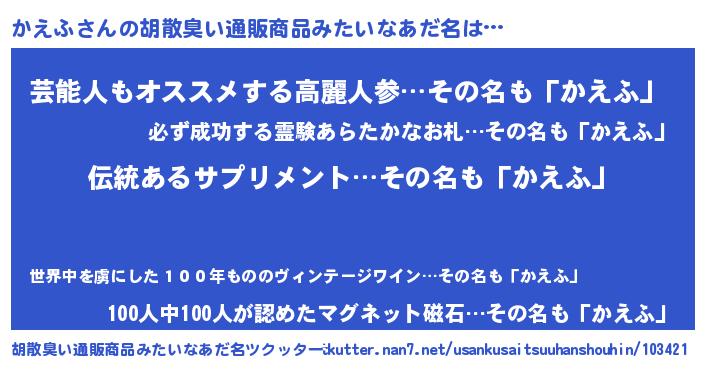 | 欧米人風あだ名 | 『トリンドルかえふ』『ウサインかえふ』 |