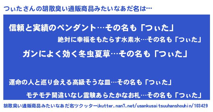 | ヘコむあだ名 | 『つぃぷりん』『つぃっふぃ~』 |