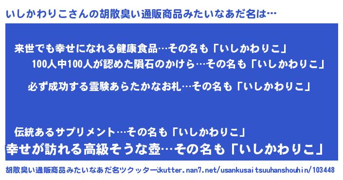 | ヘコむあだ名 | 『いしっふぃ~』『いしかわりこ(笑)』 |