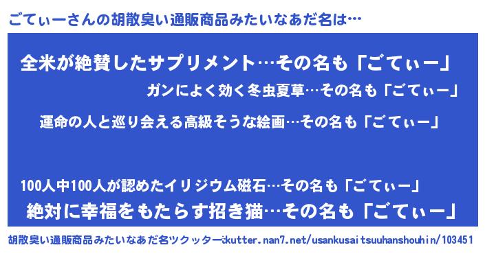| 欧米人風あだ名 | 『ごてぃークリステル』 |