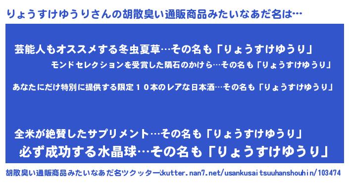 | 意味不明あだ名 | 『住所不定無職りょうすけゆうり(59歳)』 |