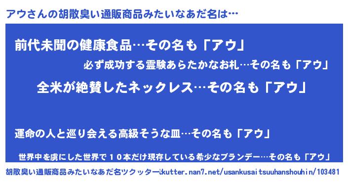 | ポケモン風あだ名 | 『メロアッウ』『ヒアウ』『ゼニアウ』 |
