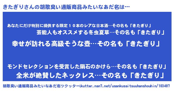 | 男性向けラノベタイトル風あだ名 | 『はたらくきたぎりさま!』 |