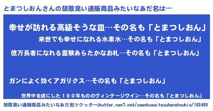 | 恥ずかしいあだ名 | 『プリティーとまつしおん』『とまっちょ』 |