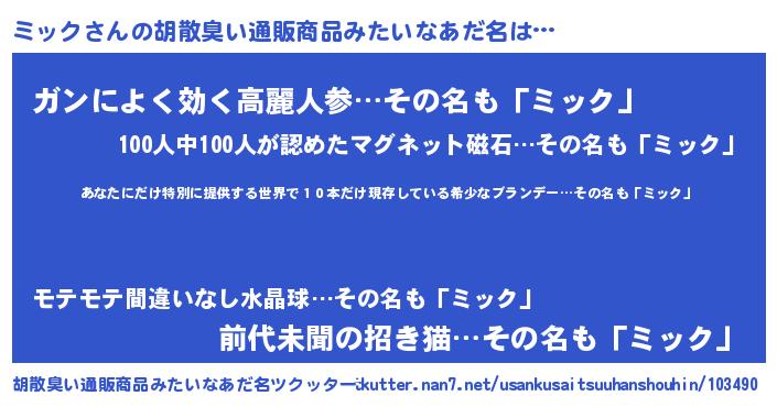 | 恥ずかしいあだ名 | 『ミックデラックス』『ミッちん』 |