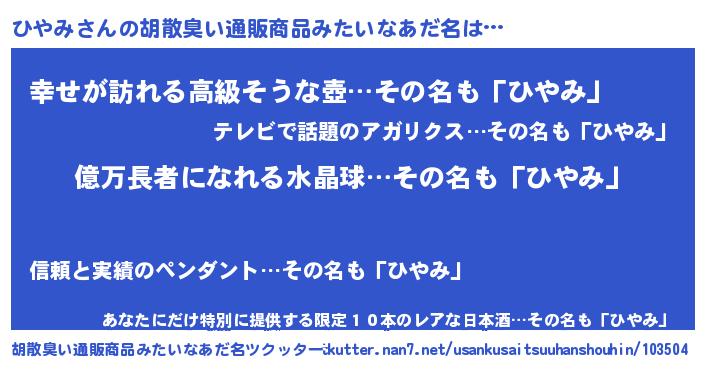 | ヒーロー風カッコイイあだ名 | 『スーパーヒヤミ』『ウルトラひやみマン』 |