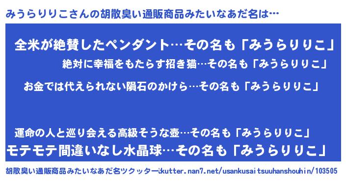 | 女子向けラノベタイトル風あだ名 | 『みうらりりこ恋絵巻』 |