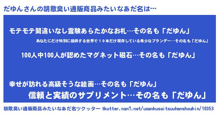 | 男性向けラノベタイトル風あだ名 | 『緋弾のダユン』『だゆんの憂鬱』 |