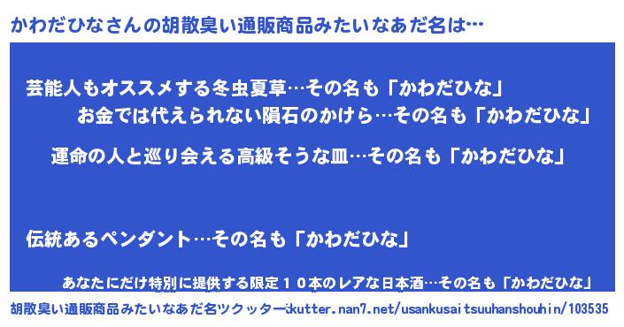 | 男性向けラノベタイトル風あだ名 | 『かわだひなに滅ぼされるだけの簡単なお仕事です』 |