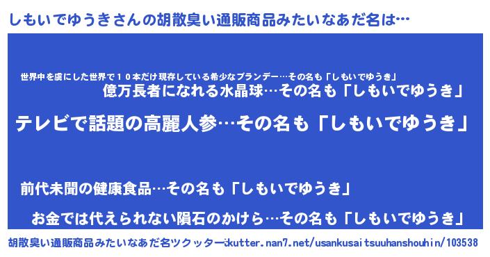 | 意味不明あだ名 | 『自称しもいでゆうき』 |
