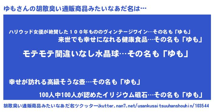 | ヘコむあだ名 | 『ゆもにゅー』『ゆも(小並感)』 |