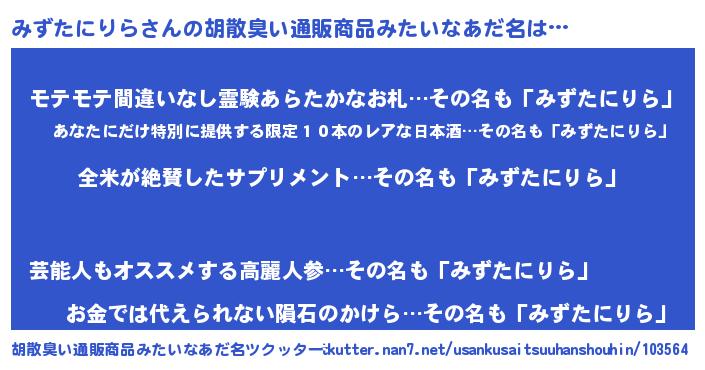 | 意味不明あだ名 | 『とにかく怪しいみずたにりら』 |