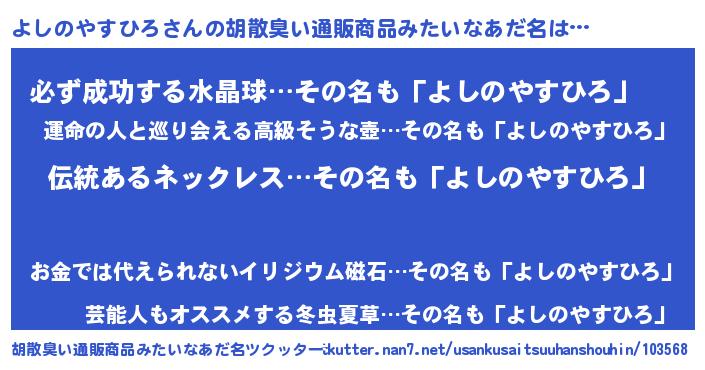 | 意味不明あだ名 | 『もやし科よしのやすひろ属』 |