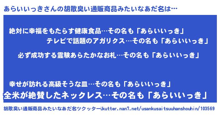 | ヘコむあだ名 | 『あらっふぃ~』『あらいいっき(笑)』 |