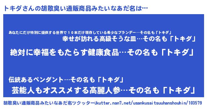| 意味不明あだ名 | 『永久保存トキダ』『つくし科トキダ属』 |