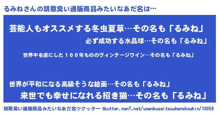 | 意味不明あだ名 | 『住所不定無職るみね(5歳)』『自称るみね』 |