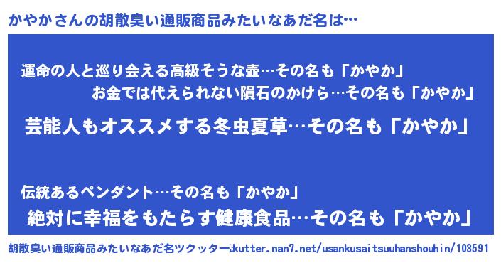 | 意味不明あだ名 | 『ヨモギ科かやか属』『自称かやか』 |